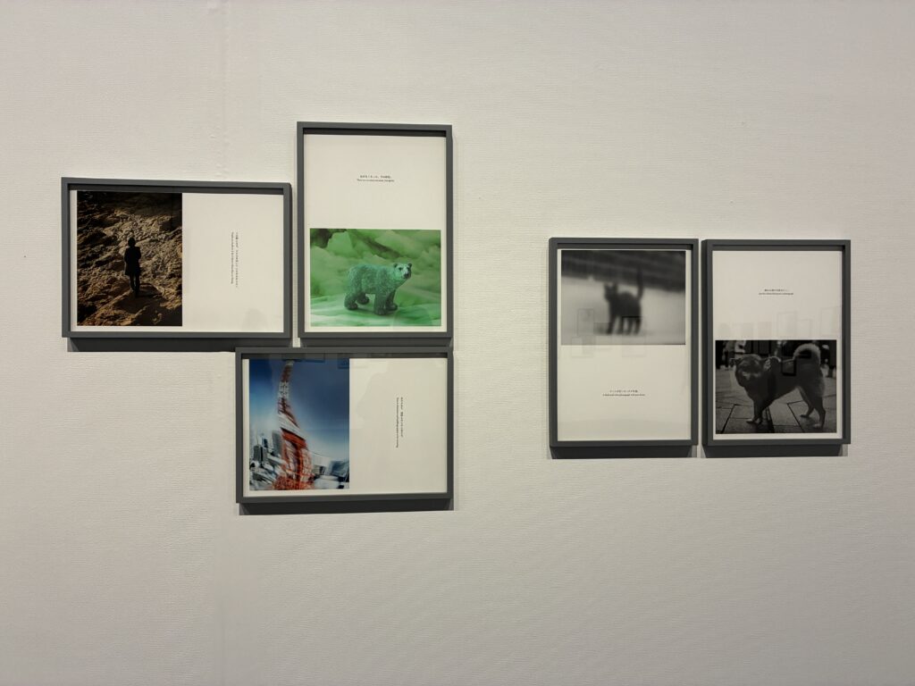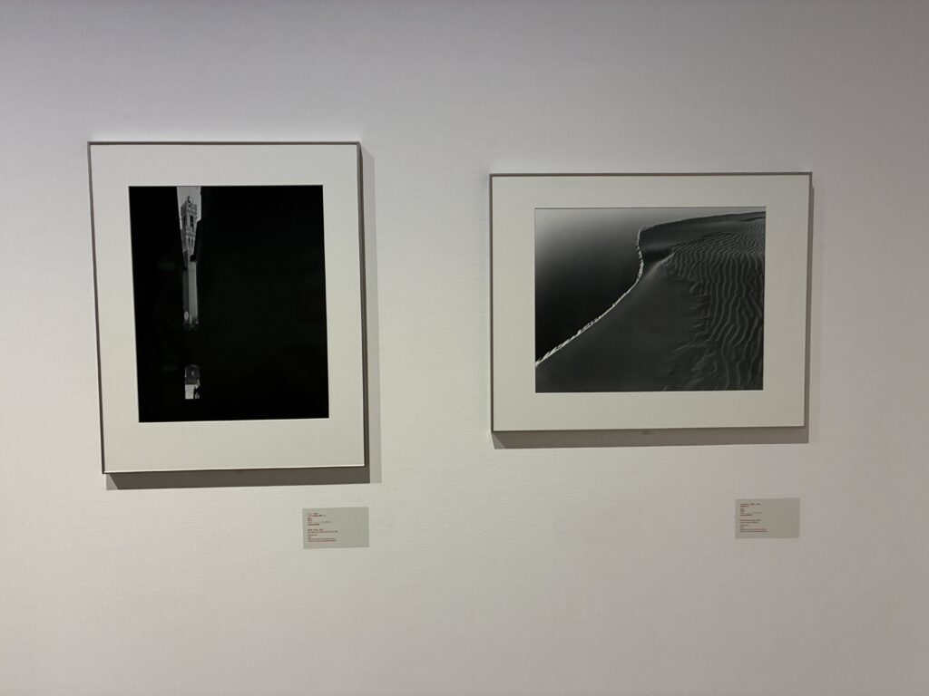 1950年「パリ市庁舎前のキス」ロベール・ドアノー作品、1944年「オマハビーチに上陸するアメリカ軍」ロバート・キャパ作品、1950年「妻のいる砂丘風景(Ⅲ)」植田正治作品がディスプレイされています。