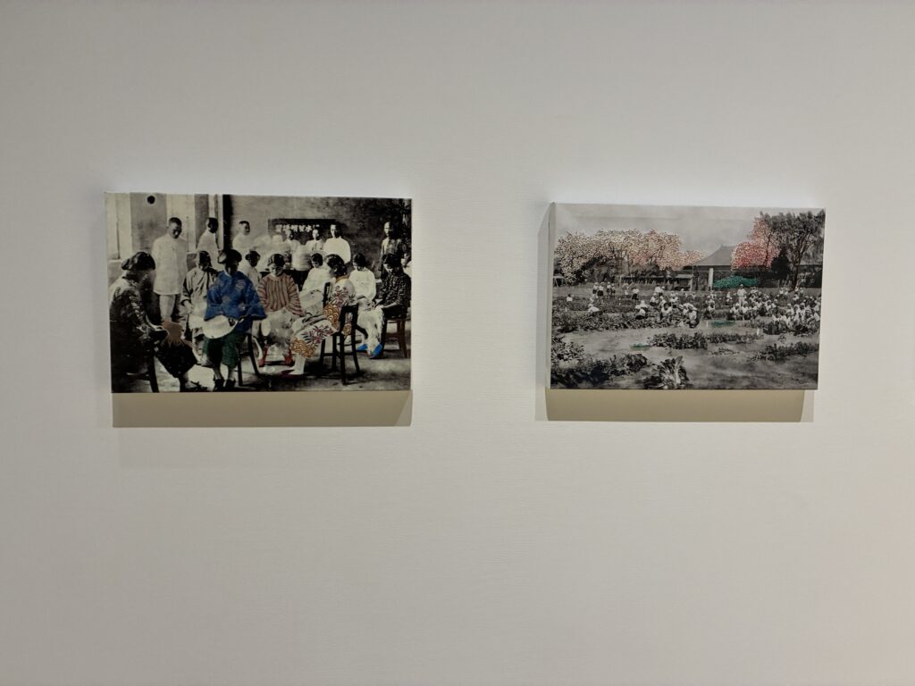 一方、壁に展示されている写真は、1933年に竣工された庭園美術館を撮影したものです。(松井写真館)