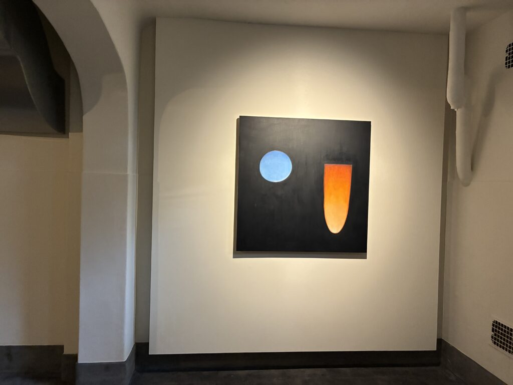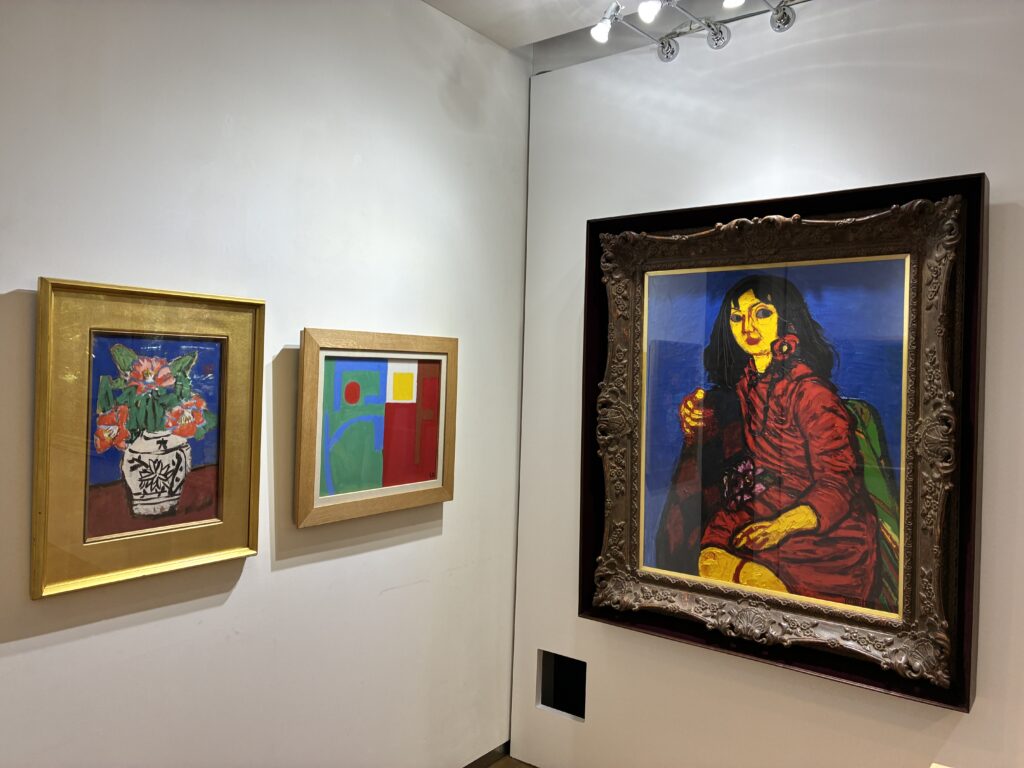全体的に抑えた色調の作品が多い中、鮮やかな赤、黄、青のコントラストが力強く印象的だった。
