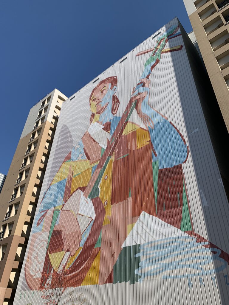 WALL ARTは遠くから見ても目印になる。アートの街の象徴。