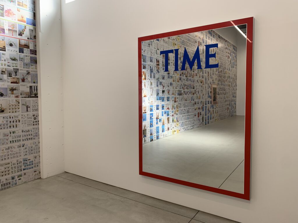 雑誌の表紙の一部に鑑賞者は取り込まれる。見ている人は虚栄心を満たすことができるが否応なく刻まれる時間の存在を確認することになる。