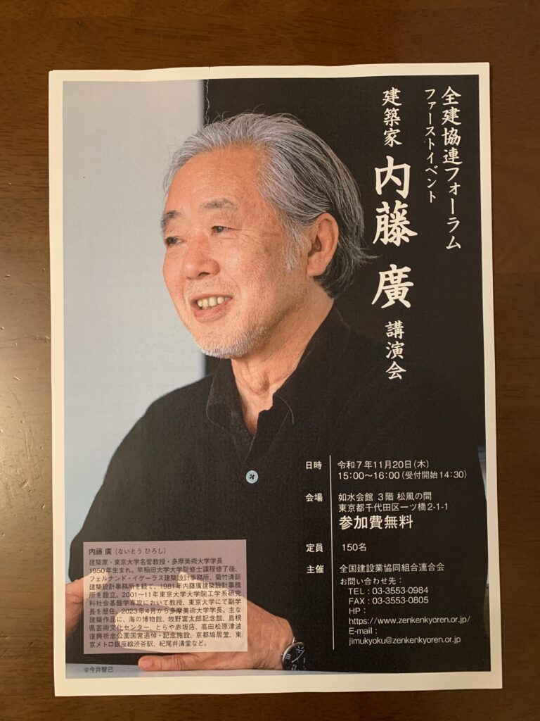 全建協連フォーラムのイベントに招聘され、登壇された内藤廣先生。