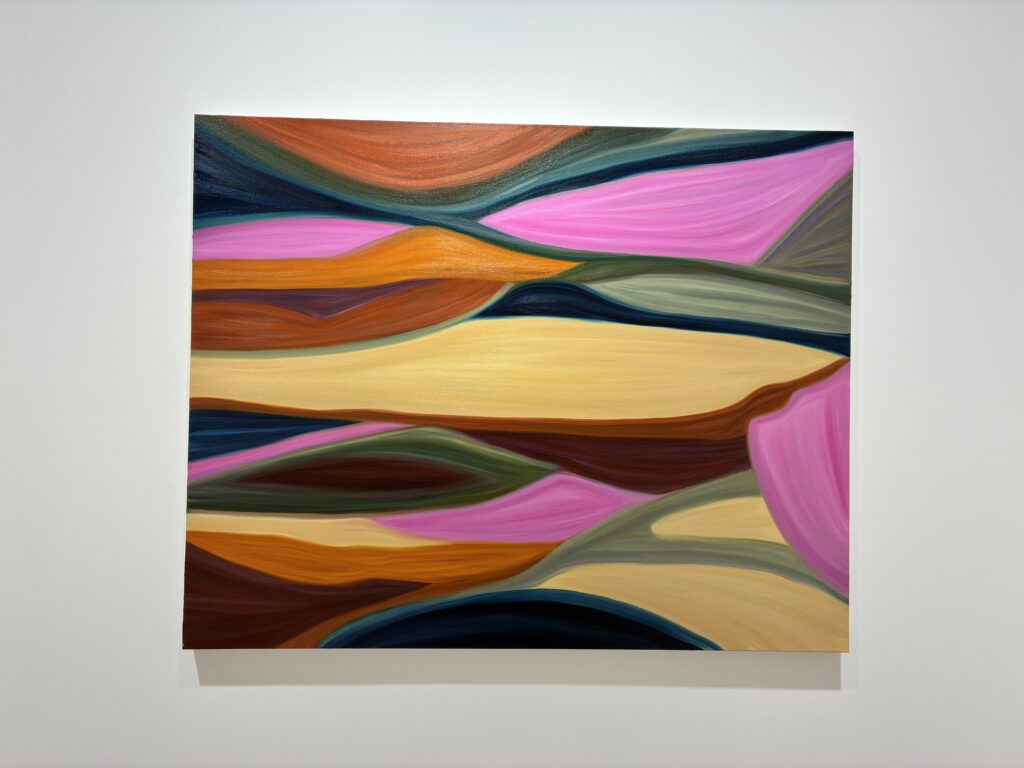 カラフルで流動的なフォルムの作品が藤本壮介設計のホワイトキューブに映える。