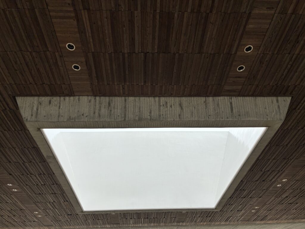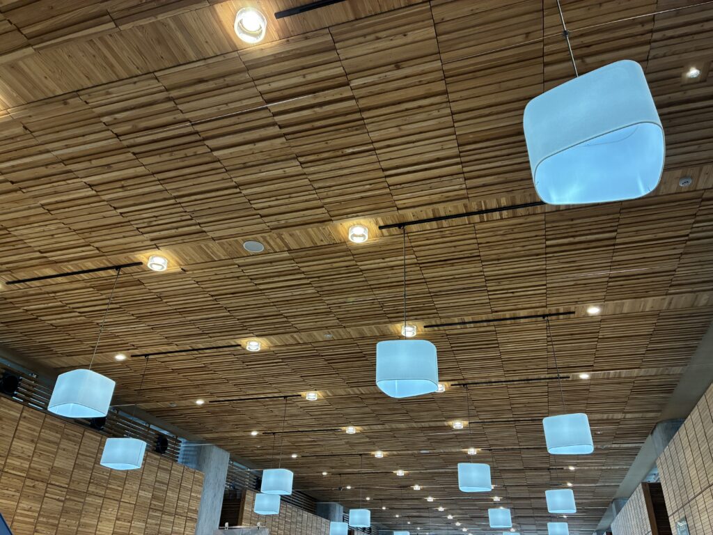 スギ材と細い鉄骨を使っているので、迫力があるけれど圧迫感は感じない絶妙なバランスを生み出しています。