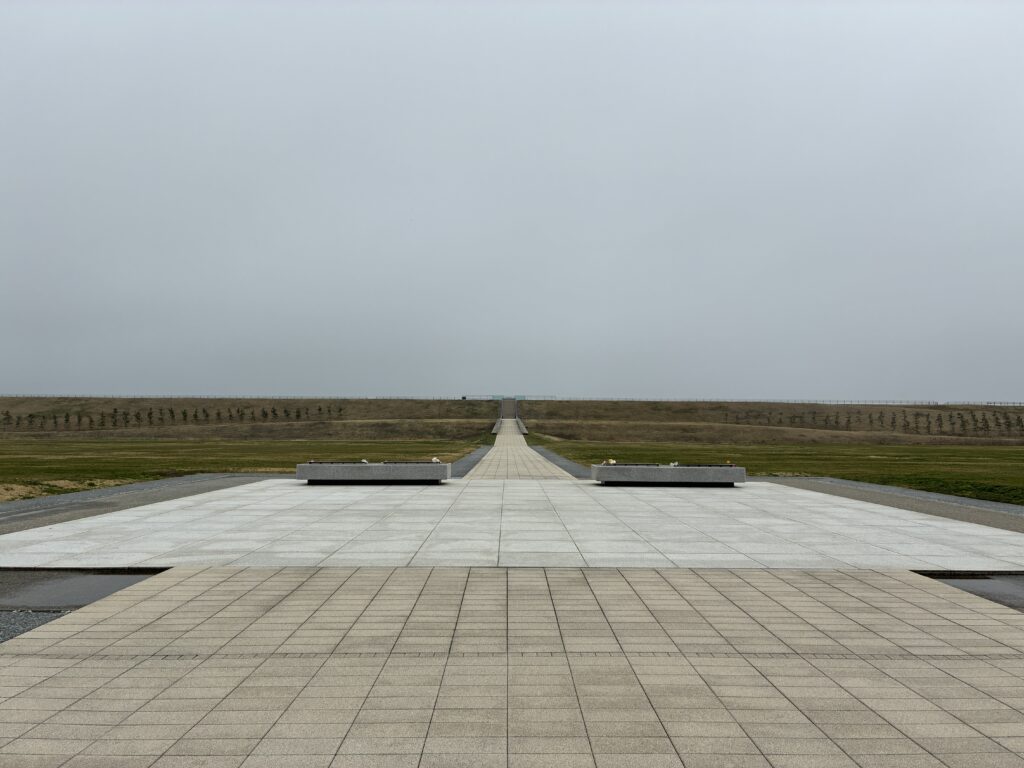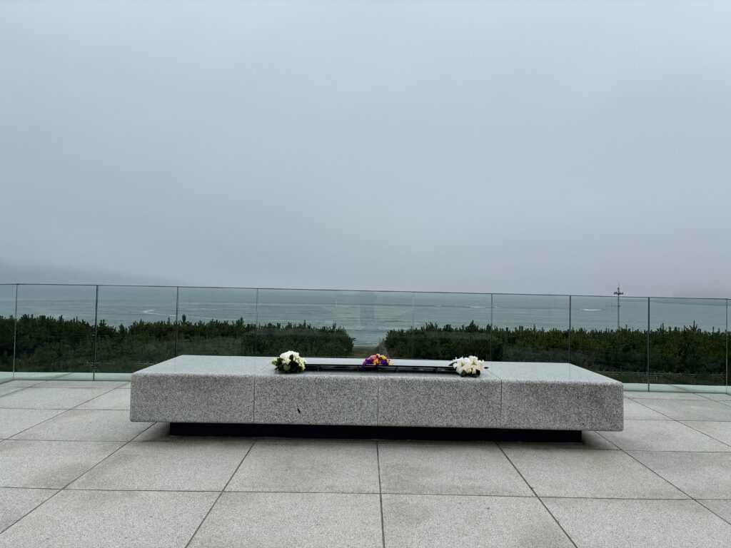 <献花の場>は祈りの軸と奇跡の一本松~タピック45を結ぶ線の交点に位置しています。