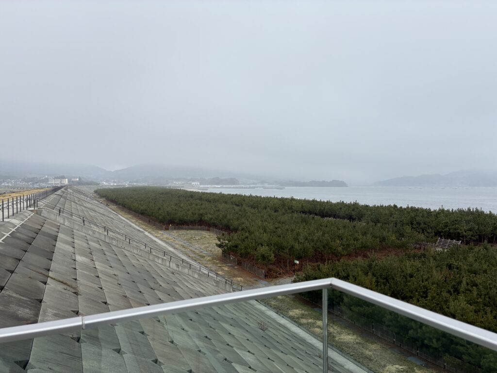 祈りの軸の終点として、津波が押し寄せた広田湾や再生していく名勝髙田松原や郷土の山々を広く望むことができます。