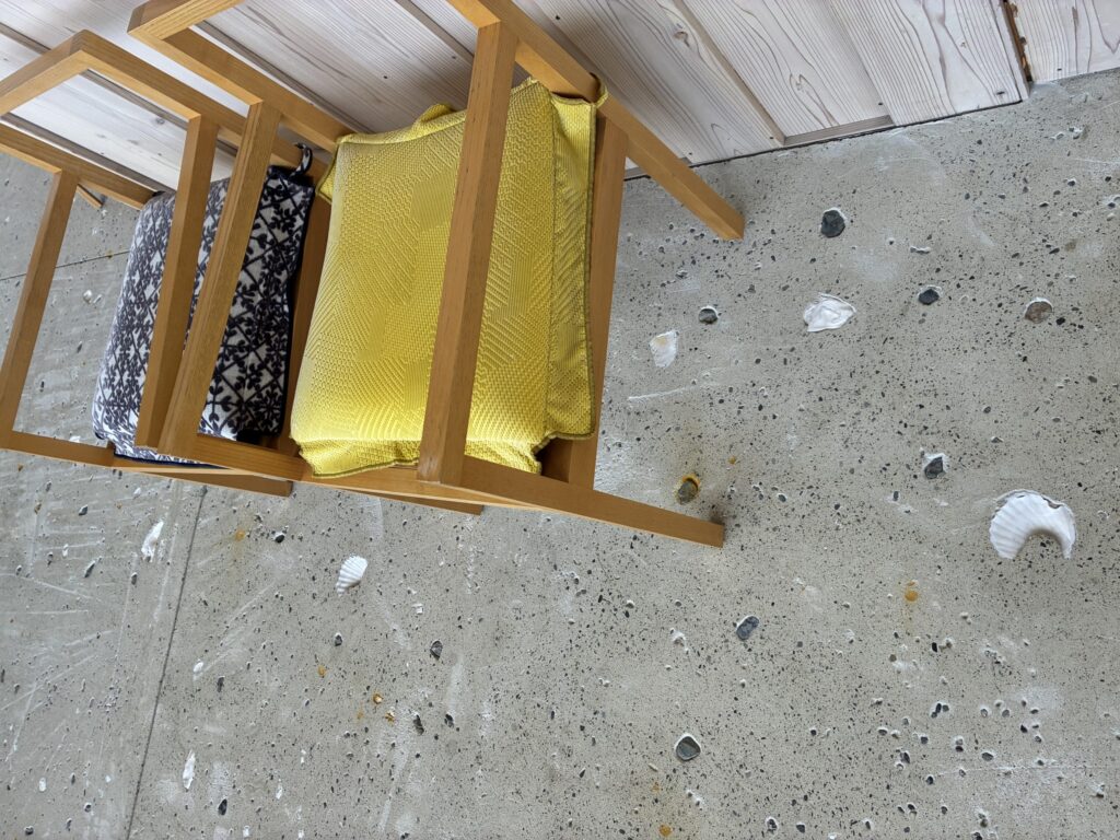 床のコンクリートには貝がらが埋めこまれて海辺の町の雰囲気を醸しだしています。