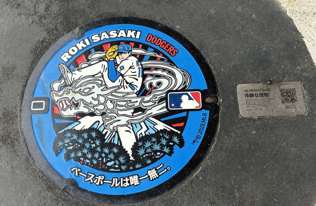 陸前高田出身のヒーロー 佐々木朗希の記念マンホール。