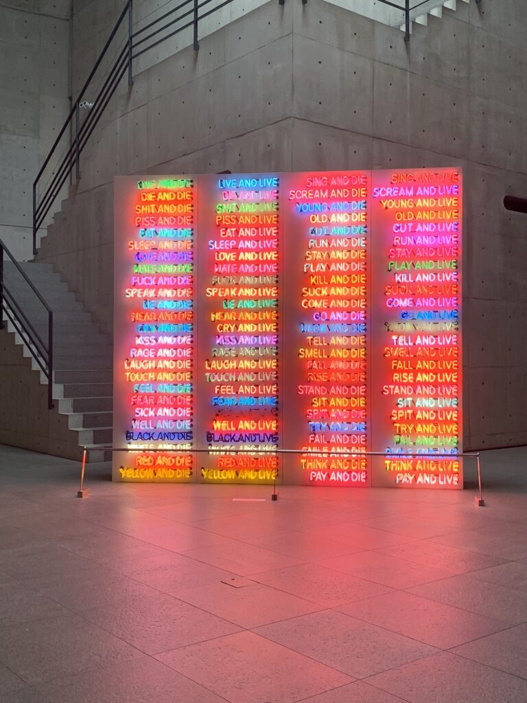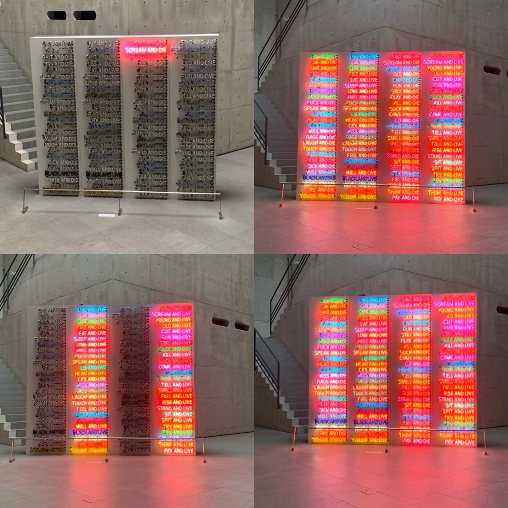 〇〇AND LIVE 〇〇AND DIE 人間の感情や行動のワードがランダムに点灯する。