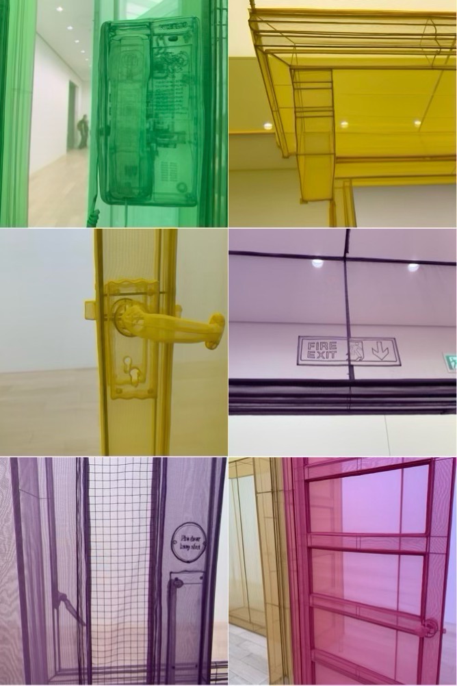 スイッチ、ドアのとってなど細部を鑑賞するのが楽しい。カラフルな布でできた立体作品は初めて鑑賞した。