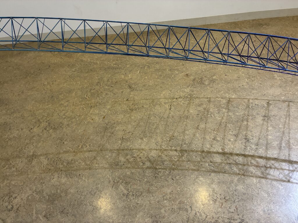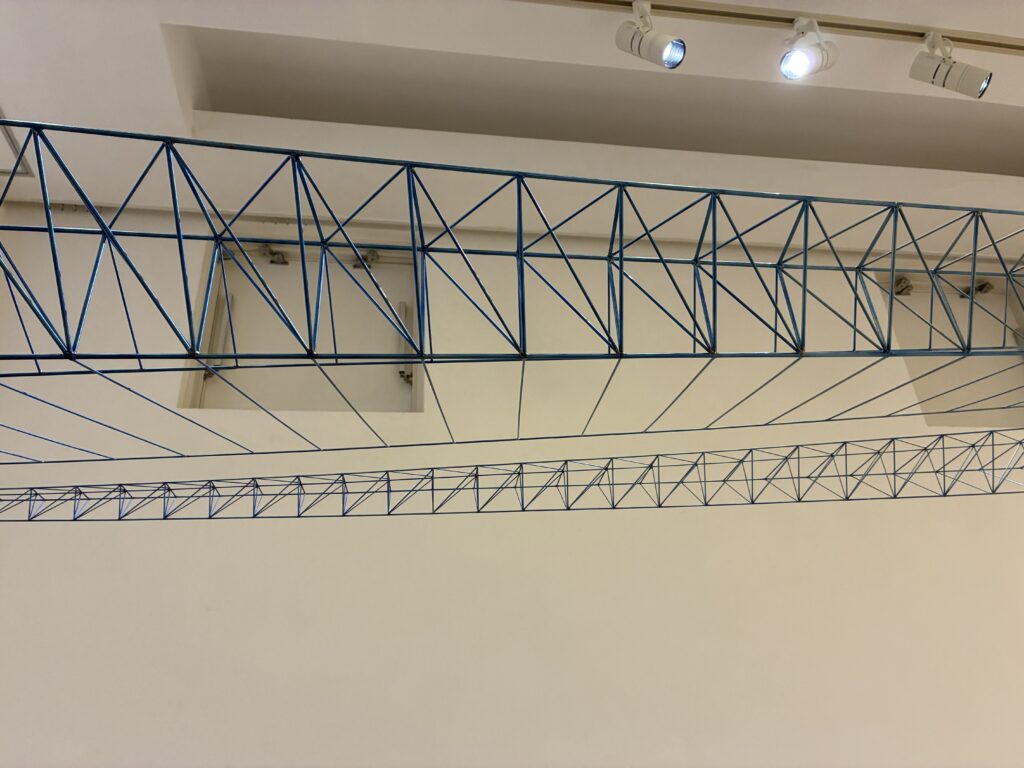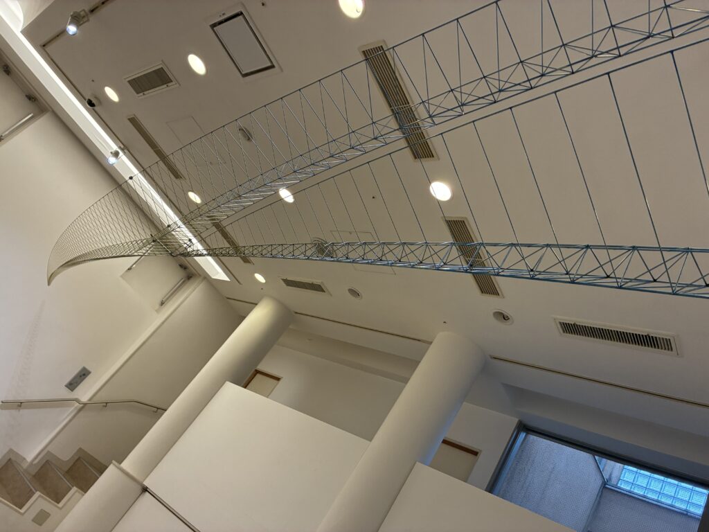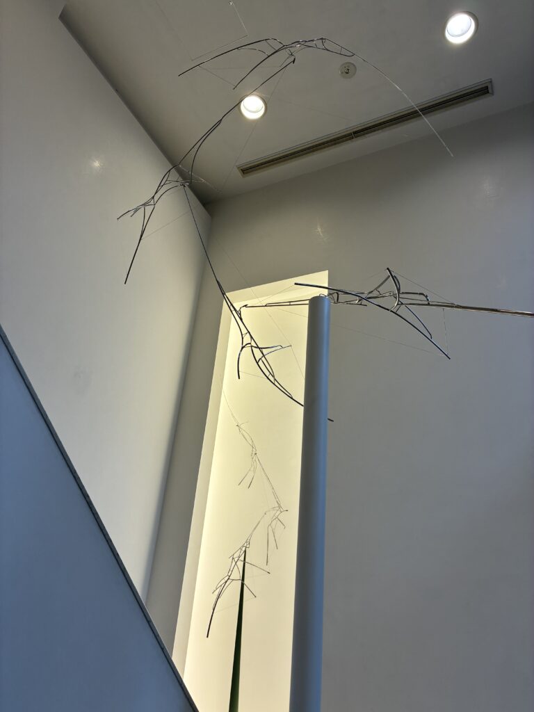 階上の吹き抜けスペースにちょうどおさまる大きさの素敵な作品。