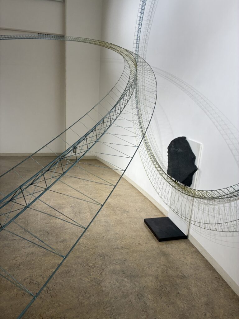この大きさの作品を一点で支えるには本体が限界まで軽くないと実現しない。