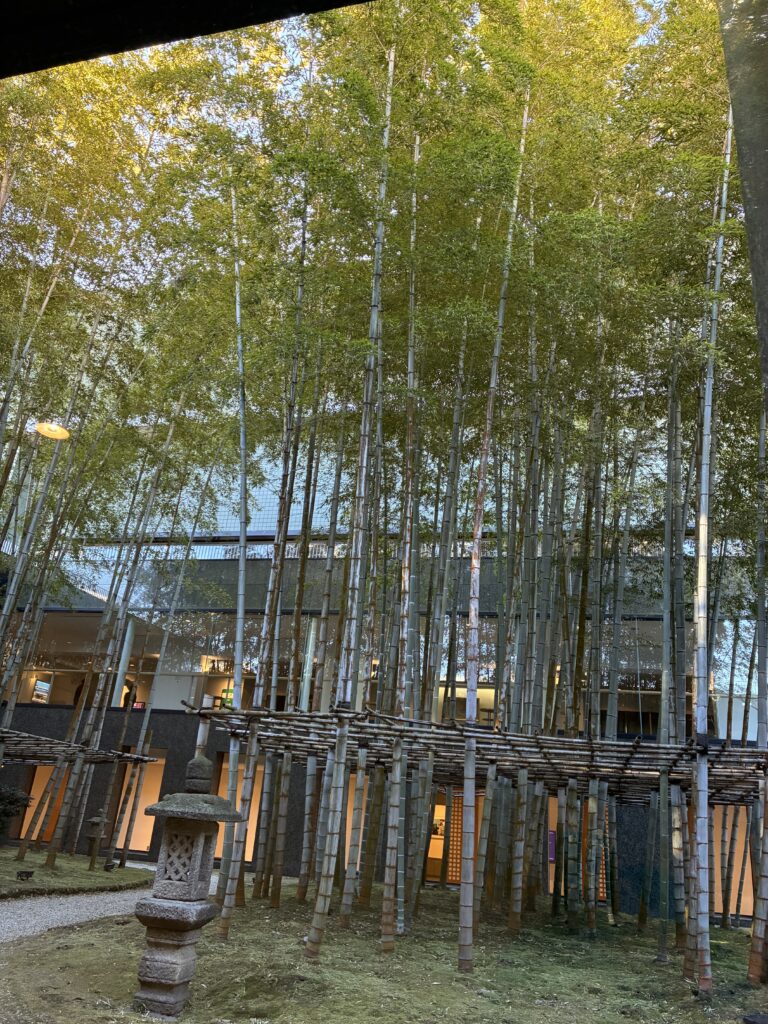 「和」のテイストを感じさせる建築で、竹林の内庭や内部の装飾が特徴的だ。