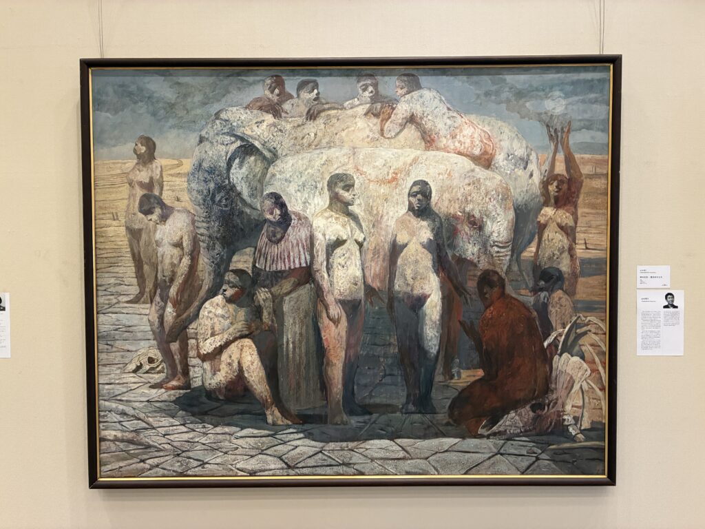 現代の不安感を人が化石化する情景に託し描かれた作品だそうだ。現代の情報や物質の豊かさは精神的な豊かさに繋がっているのか、問いかけている。