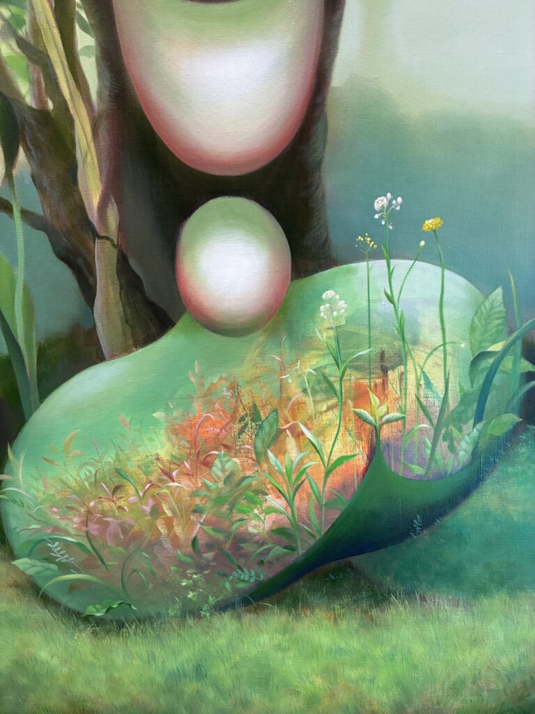 コロナ禍に自然と人工の狭間にひらく庭園に安らぎの空間を見出して制作した作品。
