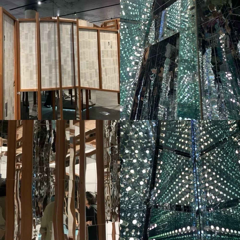 右:電飾で飾られた鏡の迷路、映し出されるのは自分。